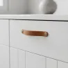 Kožne ručke za namještaj izrađene su od prave kože, poznate po svojoj trajnosti i eleganciji. Ovaj je materijal ne samo lijep na pogled, već i otporan na habanje. Pažljivo su izrađene kako bi osigurale dug vijek trajanja i jedinstven izgled.
